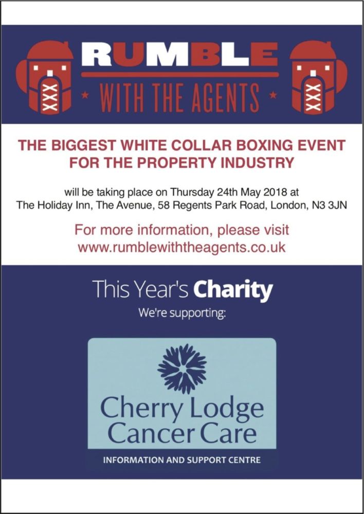 As reported previously, Cherry Lodge Cancer Care was the charity chosen to benefit from this year’s Rumble with the Agents, the biggest white-collar boxing event for the property industry. Please click here to read our full report on the event, which was held on Thursday 24th May 2018 at The Holiday Inn Finchley Central, in association with Landlord Action and sponsored by Hamilton Fraser.