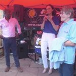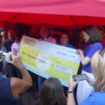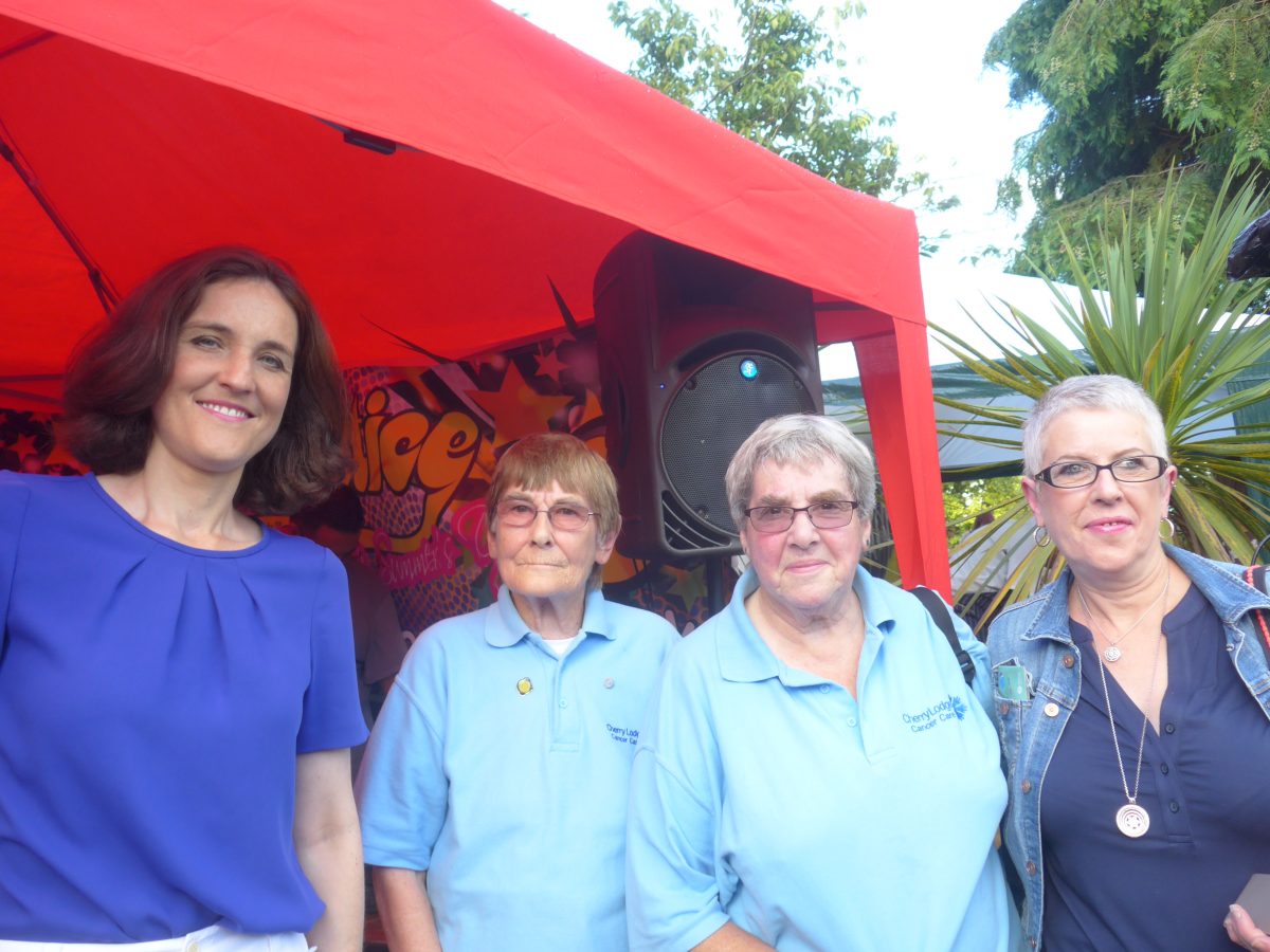 On the birthday of Soulstice crew member Richard Weekes, in the presence of local MP Theresa Villiers, and under a red canopy that challenged our photographers, Soulstice chairman Dave James handed over a hugely impressive ceremonial big cheque to Cherry Lodge events coordinator Tina. This year’s festival proceeds of £40,000 brought Soulstice’s total fundraising for us since 2007 to a fantastic £215,000. Summer Soulstice is by far the biggest third-party supporter of Cherry Lodge Cancer Care and Soulstice money is used to pay the salary of Cherry Lodge’s ‘Soulstice’ outreach nurse, Kirsty Mabb, and also to finance the Cherry Lodge van.