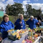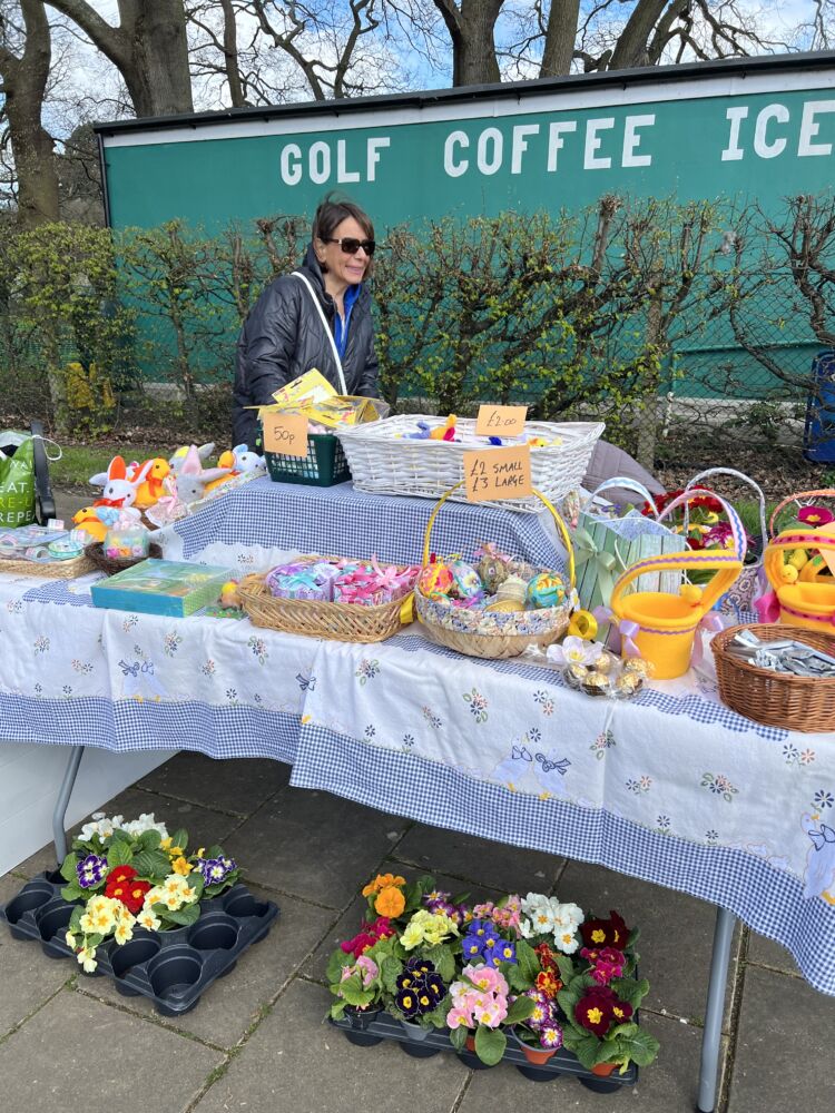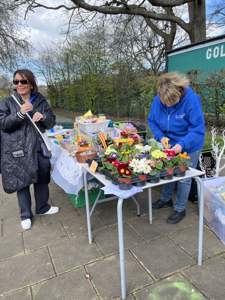 After the walk, people gathered to socialise and to support Cherry Lodge further by buying very attractive goods from the two Easter-themed tables. Brightly coloured woollen chicks and rabbits with a chocolate egg at their centre were among the best sellers. These were knitted by CL coffee morning attendees, who, from the end of May, will be getting together monthly as members of a new CL knitting group. Pots of primulas added a splash of colour and sold very well. Also very popular were volunteer Bobbi’s cupcakes – in fact they were so popular that one unfortunate purchaser lost her cupcake, paper and all, to a large labrador she thought was simply interested in a snuggle. As previously, the musical accompaniment of volunteer Colton Clarke (CL’s answer to Elvis and Johnny Cash) was much appreciated.