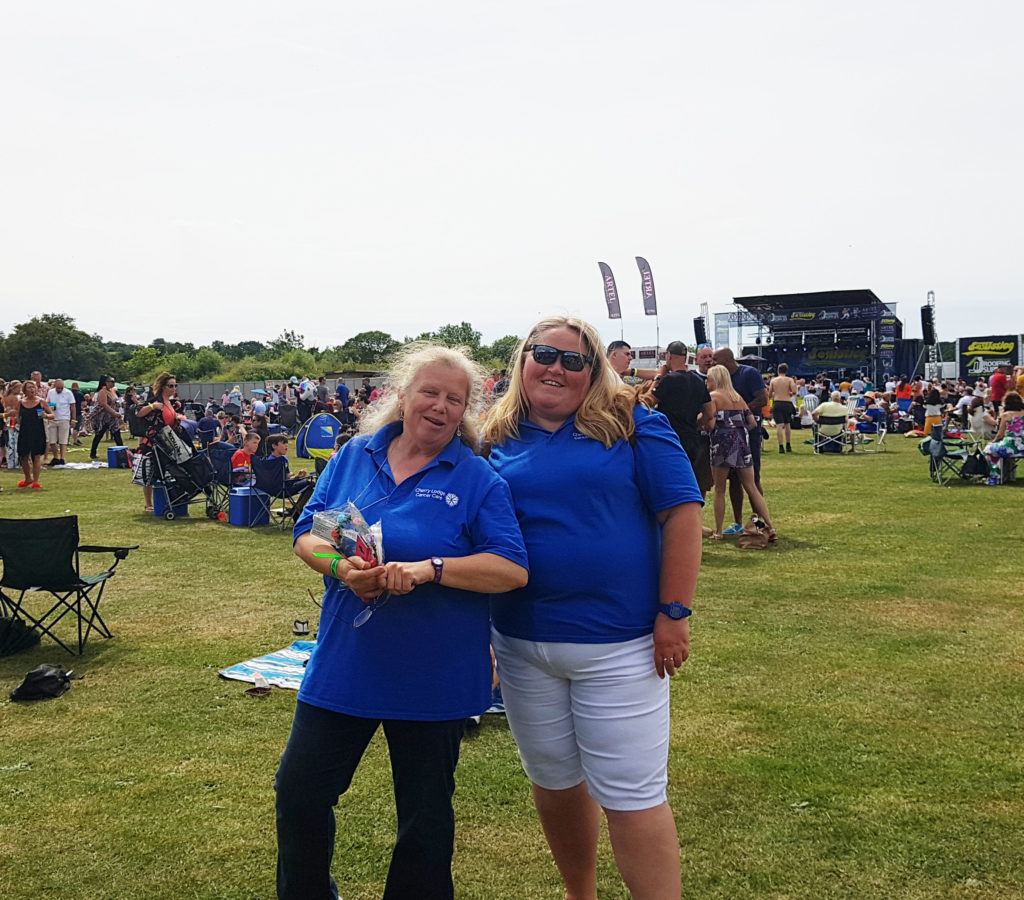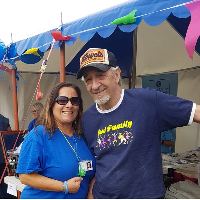 Other visitors to the Cherry Lodge stall included Charles Weekes, father of Richard and his brother Andy in whose memory this annual event is put on. Dave James, chairman of Summer Soulstice, also came by and can be seen with Tina, Cherry Lodge Fundraising Coordinator, in photo 9. Some of our volunteers had been busy creating ‘Soulstice slime’ which proved hugely popular and sold out in no time. The stall’s LED flashing jewellery was also in great demand and as the daylight slowly disappeared it became an extremely attractive decoration.