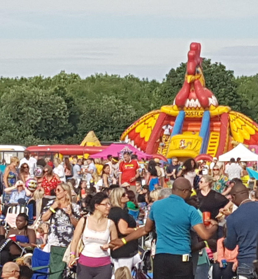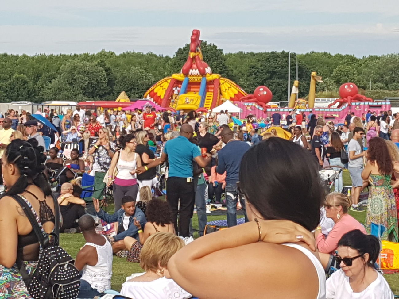 The festival food was wonderfully varied and especially the Jamaican street food ’went down a treat’. Entertainment for the many children was much appreciated and they made full use of the bouncy castles, slides and trampolines.