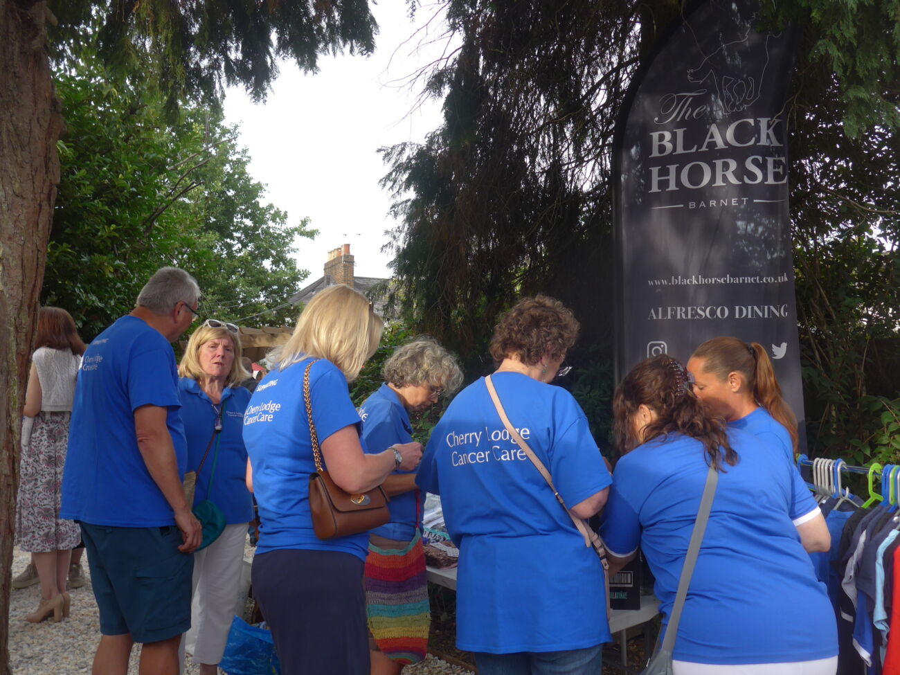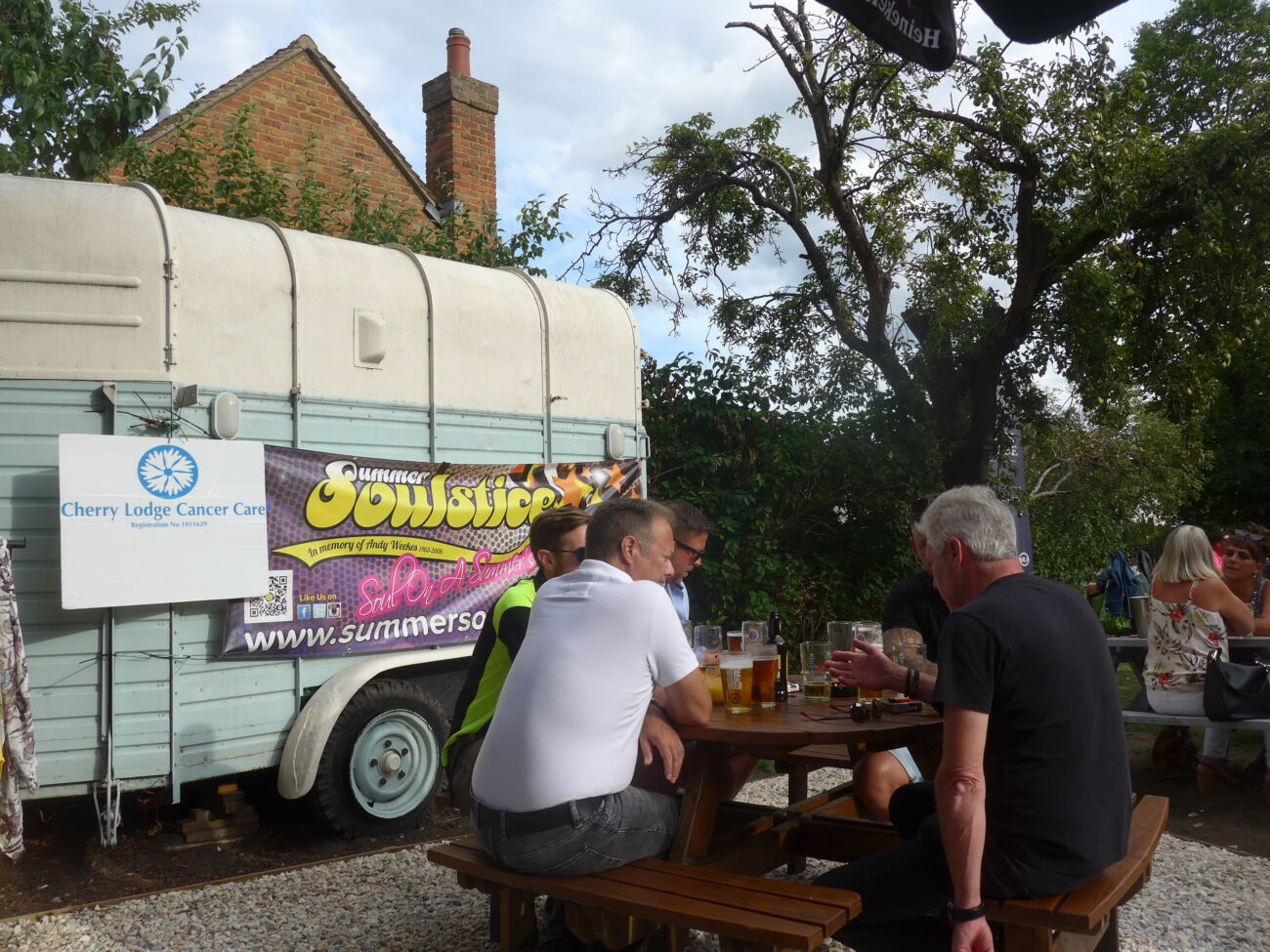 As is customary, the Soulstice crew organised a Big Payback Event at the Black Horse pub on August Bank Holiday Sunday (28th August). Supporters of Summer Soulstice and Cherry Lodge Cancer Care joined Soulstice crew members and Cherry Lodge volunteers (all smartly clad in blue CL t-shirts) for an afternoon and evening of joyful music and companionship.