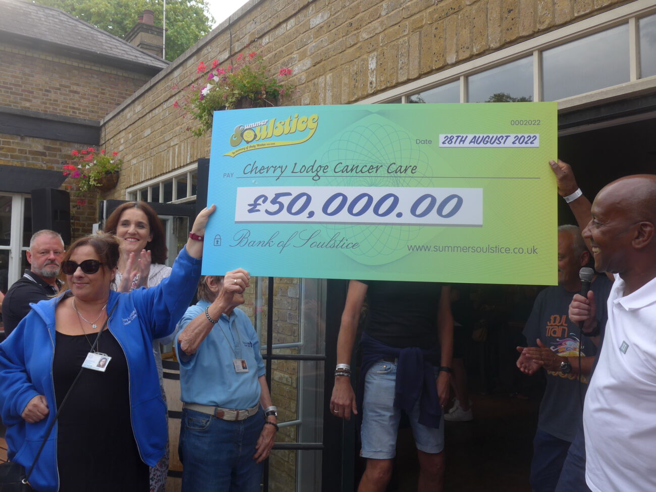 Summer Soulstice has been supporting Cherry Lodge Cancer Care since 2007, when a group of Old Elizabethans got together to hold their first Soul Music festival in Barnet to raise money in memory of their school mate Andy Weekes, who died of cancer in the USA in 2006. Summer Soulstice is Cherry Lodge’s largest third-party supporter by far – and this year’s record donation of £50,000 takes the total they have raised for us to a phenomenal £480,000.