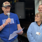 The symbolic handing over to Cherry Lodge Cancer Care of the money raised at the Summer Soulstice festival is at the centre of the traditional August Bank Holiday gathering at the Black Horse. Jamie Farquharson began the proceedings and the raffle was drawn. Dave James, chairman of Summer Soulstice, thanked everyone for their contributions to this year’s great success. Also representing Summer Soulstice was Richard Weekes, brother of Andy, in whose memory the festival is held every year. Special recognition was given this year to Jamie Topham, who was presented with the first Summer Soulstice Life-time Award for his massive contribution to the festival’s success, from its beginnings until last year when Jamie decided it was time to take a back seat. On behalf of Cherry Lodge, chairman Margaret Clark gave heartfelt thanks to Summer Soulstice, emphasising that they are by far the biggest financial supporter of our charity. As in previous years, Barnet MP Theresa Villiers also spoke at this event, expressing her support for Summer Soulstice and Cherry Lodge.