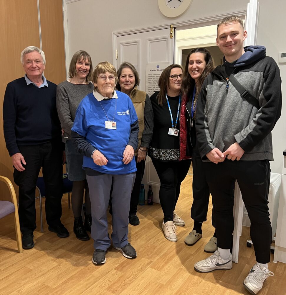 One day later, two of our runners – Callum and Lucy – took up the offer always made to our London Marathon participants to visit the Cherry Lodge centre for a soothing treatment, refreshments and to receive their Cherry Lodge London Marathon medals in person. Our group photograph below shows Steve (volunteer reflexologist), Sarah (CL co-chair), Margaret (CL founder and veteran marathon runner), Andi (volunteer reflexologist), Tina (fundraising events coordinator, Lucy and Callum.