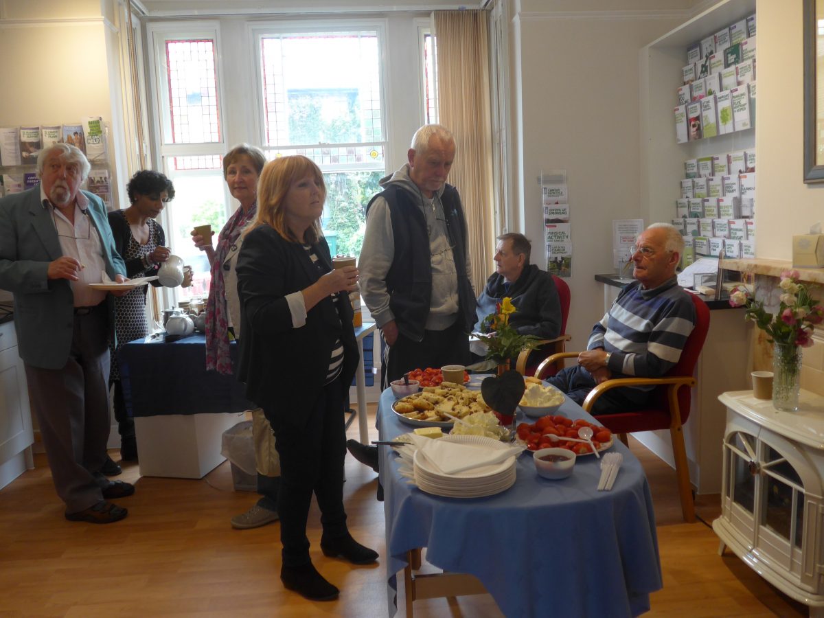 A special tea party to thank Cherry Lodge’s volunteers was held at Howard House on Friday 3rd June 2016. It was attended by over 30 volunteers, who very much enjoyed the delicious tea – with scones, butter, cream, jam, strawberries and shortbread – as well as the opportunity to share experiences with other people in the same, or sometimes very different, volunteering roles as themselves. As a small token of thanks, volunteers at the tea party were given a shiny, metallic blue Cherry Lodge 20th anniversary pen.