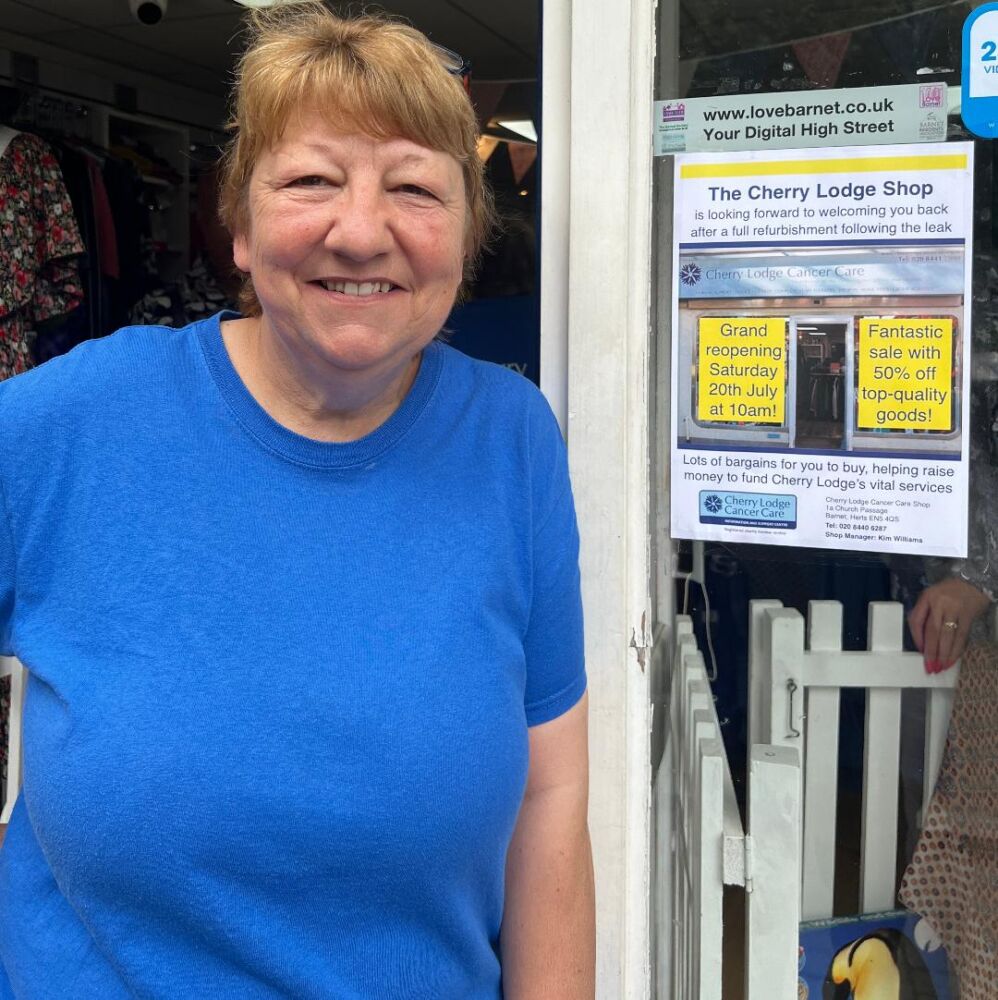 On 20th July 2024, following tremendously hard work over many weeks by Kim (CL shop manager), Annys (assistant manager), Sarah (locum assistant manager), Sheila (shop assistant) and a team of volunteers, the Cherry Lodge Cancer Care charity shop in Church Passage, Barnet was finally able to reopen. We thank them all, and also Linda (operations manager), and Graeme (trustee and willing handyman).