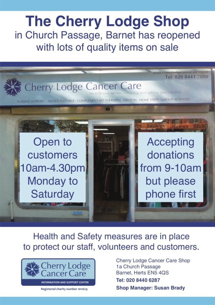 For any enquiries relating to the Cherry Lodge Shop, please call 020 8440 6287 and ask to speak to the Manager, Susan Brady, or Assistant Manager, Annys Douglas.