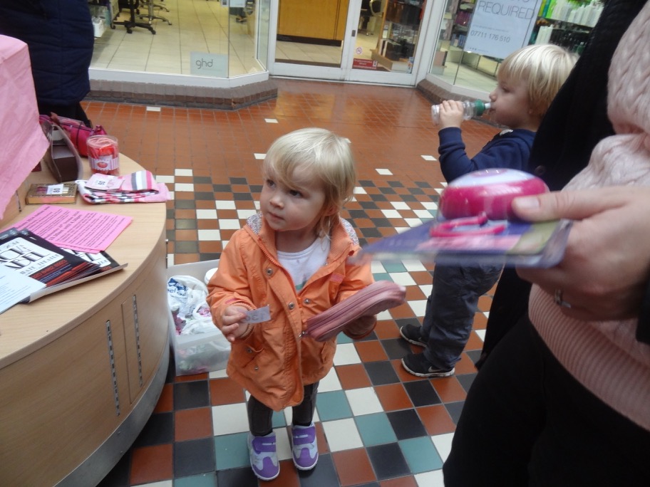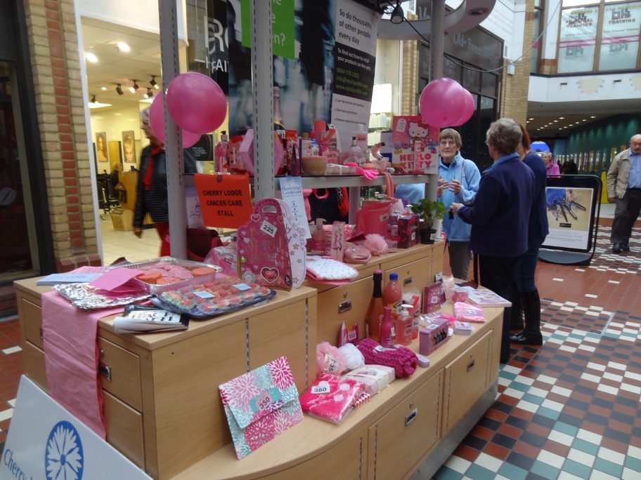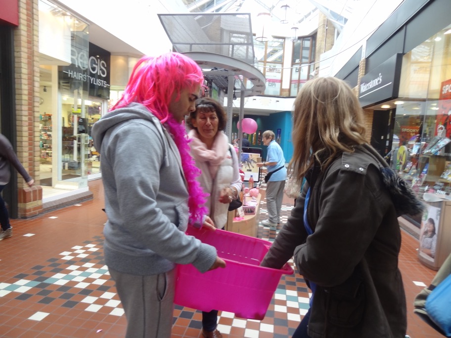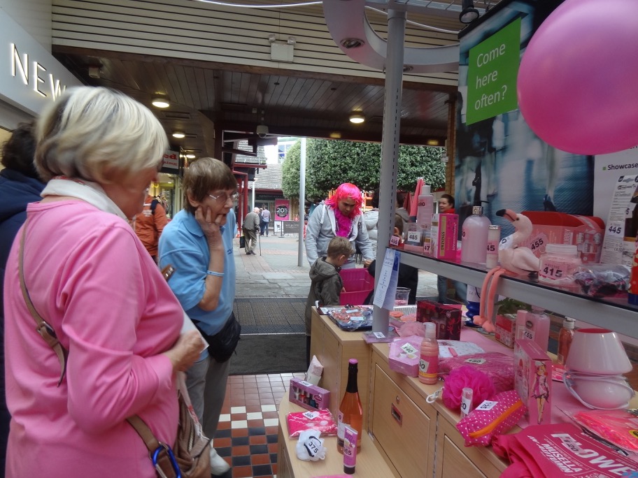 Tickled pink is a good way to describe how we all felt at the end of the Pink Tombola in the Spires on Saturday 18th October 2014. During the past few weeks people readily responded to requests for good quality pink goodies to be brought into Cherry Lodge for this event and our barrow was completely full when people came to buy their ‘Three for a Pound’ tombola tickets.